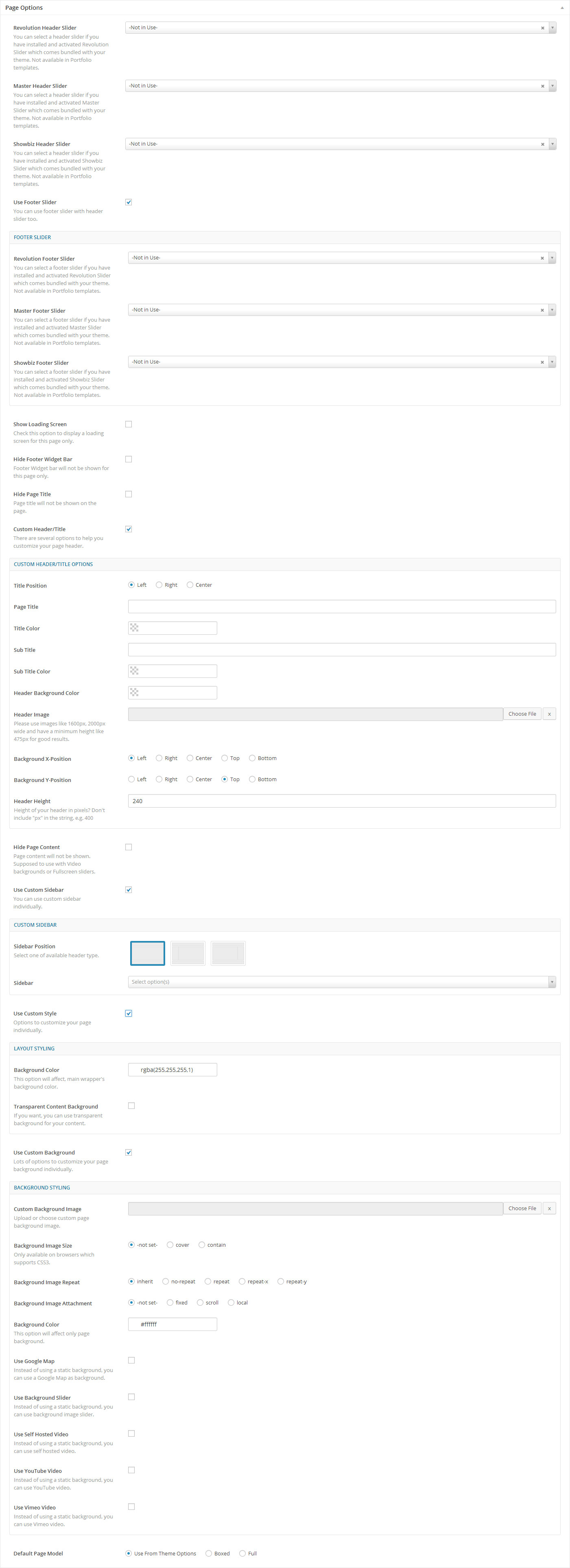 Default Page Model: Use From Theme Options, Boxed and Full options available to set your page’s layout individually.