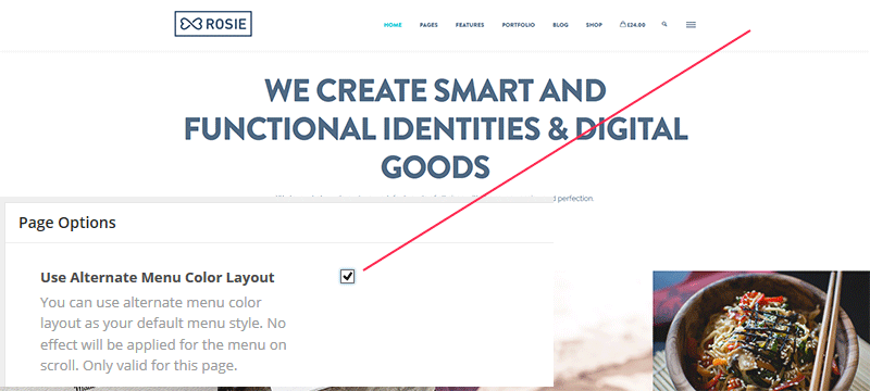 You can use alternate menu color layout as your default menu style. No effect will be applied for the menu on scroll. Only valid for this page. In case selected of Use “Alternate Menu Color Layout” your menu will be look like below.
