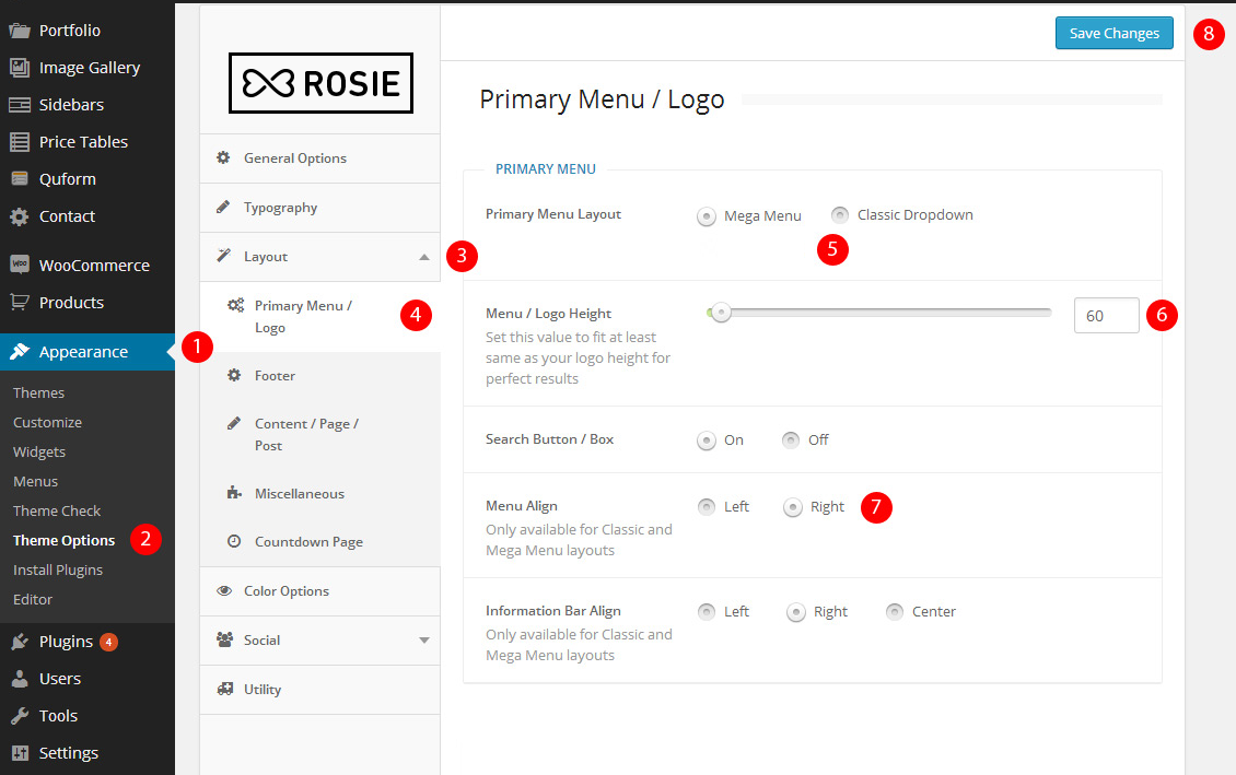 - Enter a proper height of your logo or menu. Choose at least 20px more than your logo’s height in order to create perfect looking.