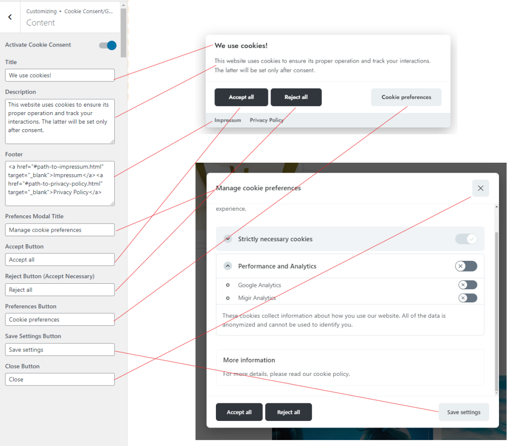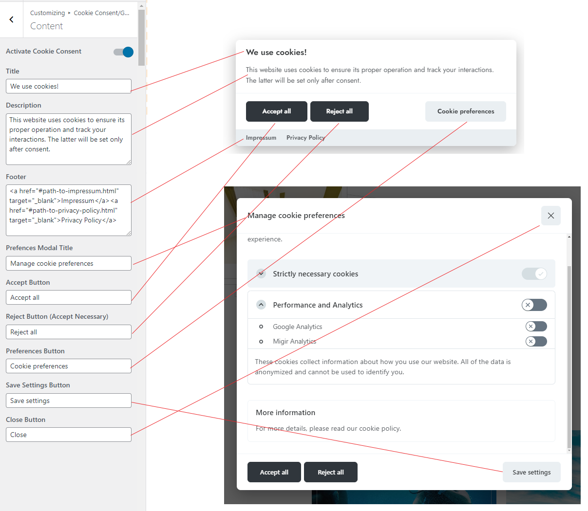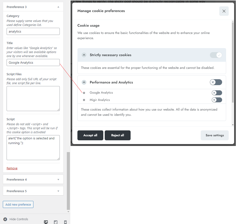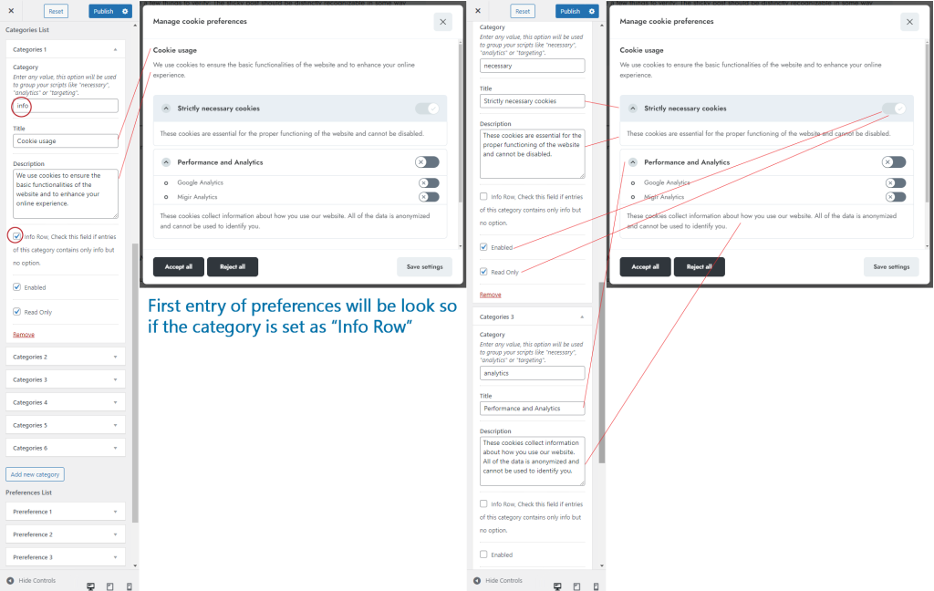 This is important, use to define your cookie categories, you can add your own categories or use the available ones. You should supply same category definitions when entering Preferences in the next steps.