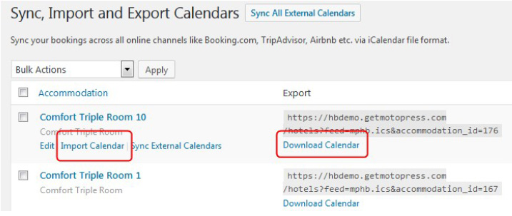 should have its unique iCal URL). Then go to your WordPress dashboard Bookings → Sync